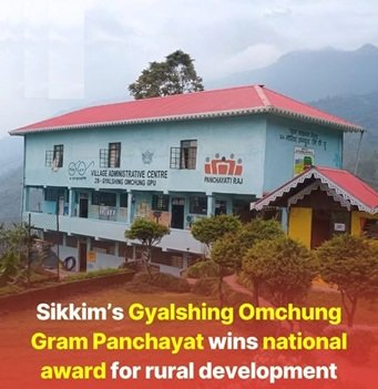 The Gyalshing Omchung Gram Panchayat in Sikkim has been honoured with a National Award for its outstanding contribution to rural development.