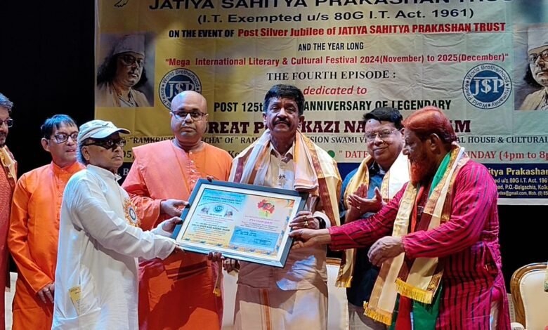 Kolkata: Nagathihalli Ramesh, a distinguished poet, writer, social activist, and filmmaker from Karnataka, received the prestigious Kazi Nazrul Memorial International Lifetime Achievement Award, “Premanjali,” on August 3, 2025, during a grand ceremony at the Ramakrishna Mission Swami Vivekananda’s Ancestral House and Cultural Centre in Kolkata. Organized by the Jatiya Sahitya Prakashan Trust to commemorate the 125th birth anniversary of the revered rebel poet Kazi Nazrul Islam, the event celebrated Ramesh’s remarkable contributions to literature, environmentalism, social activism, and the arts.